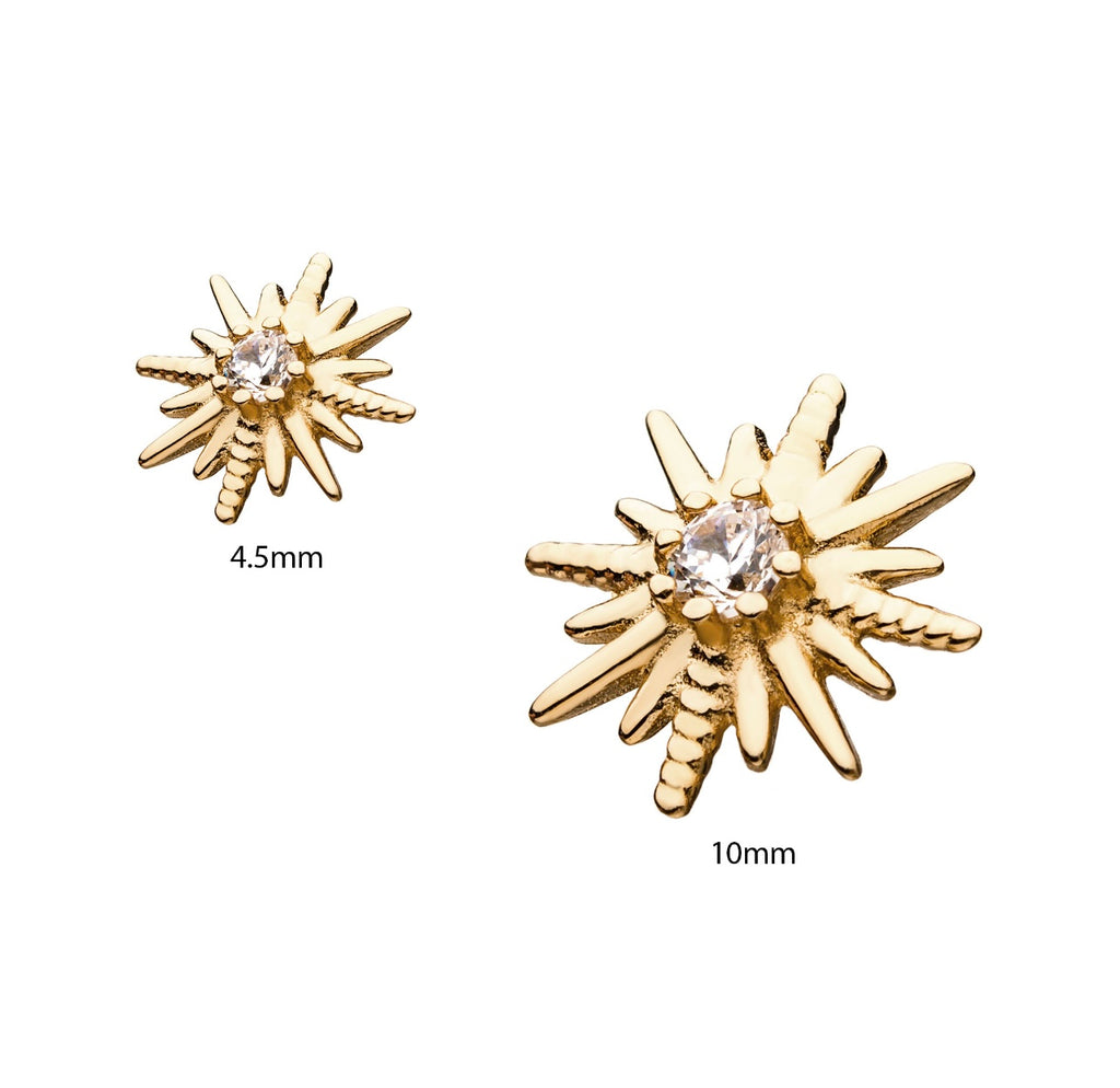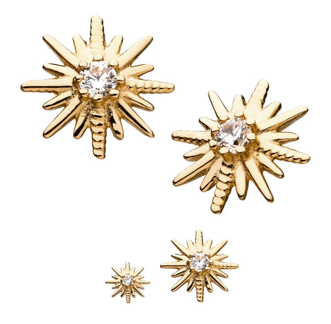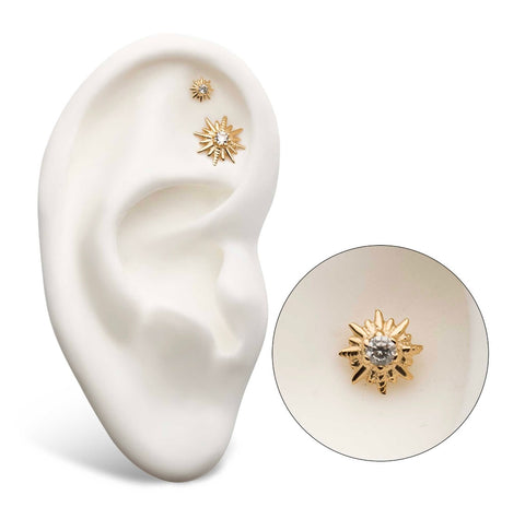 14kt Yellow Gold Threadless 4.7mm Solo Clear Gem Star Top is made of solid 14kt nickel-free Gold with durable 316LVM ASTM F-138 Implant Grade Steel...